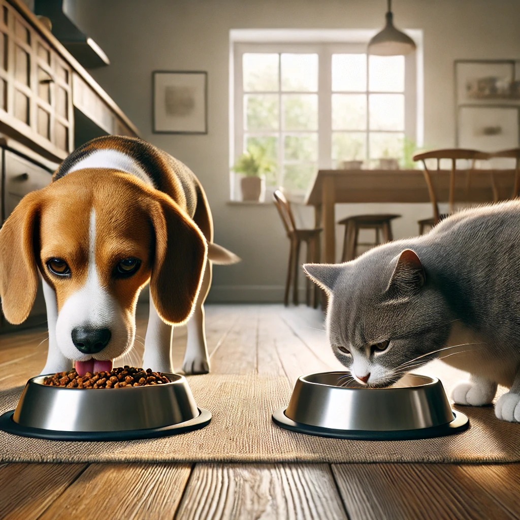 A4. 강아지와 고양이의 영양소 요구는 다르기 때문에 각 동물의 사료를 따로 먹게 해야 해요. 잘못된 식단은 건강 문제를 유발할 수 있어요.