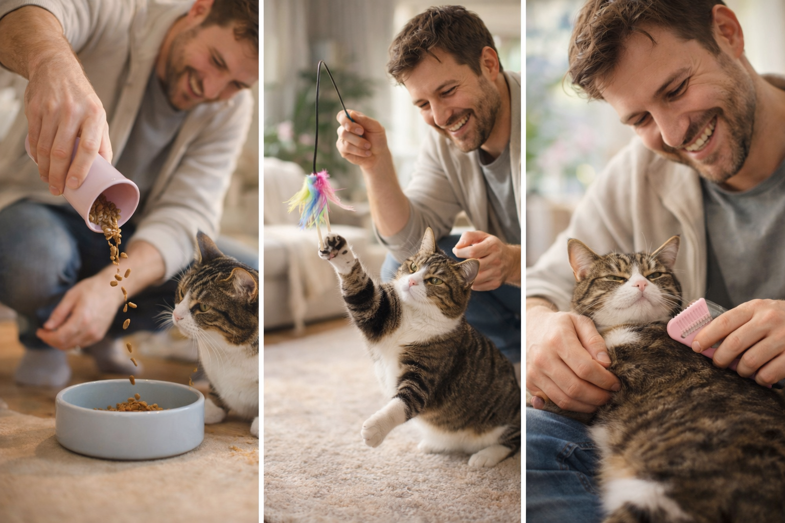 이후에는 짧게라도 함께 시간을 보내는 게 중요해요. 장난감을 같이 가지고 놀거나, 고양이가 좋아하는 브러싱을 해주는 것도 좋아요. ‘나와 너만의 시간’을 다시 회복하는 거죠. 이 시간을 통해 고양이는 다시 안정을 느끼게 돼요.