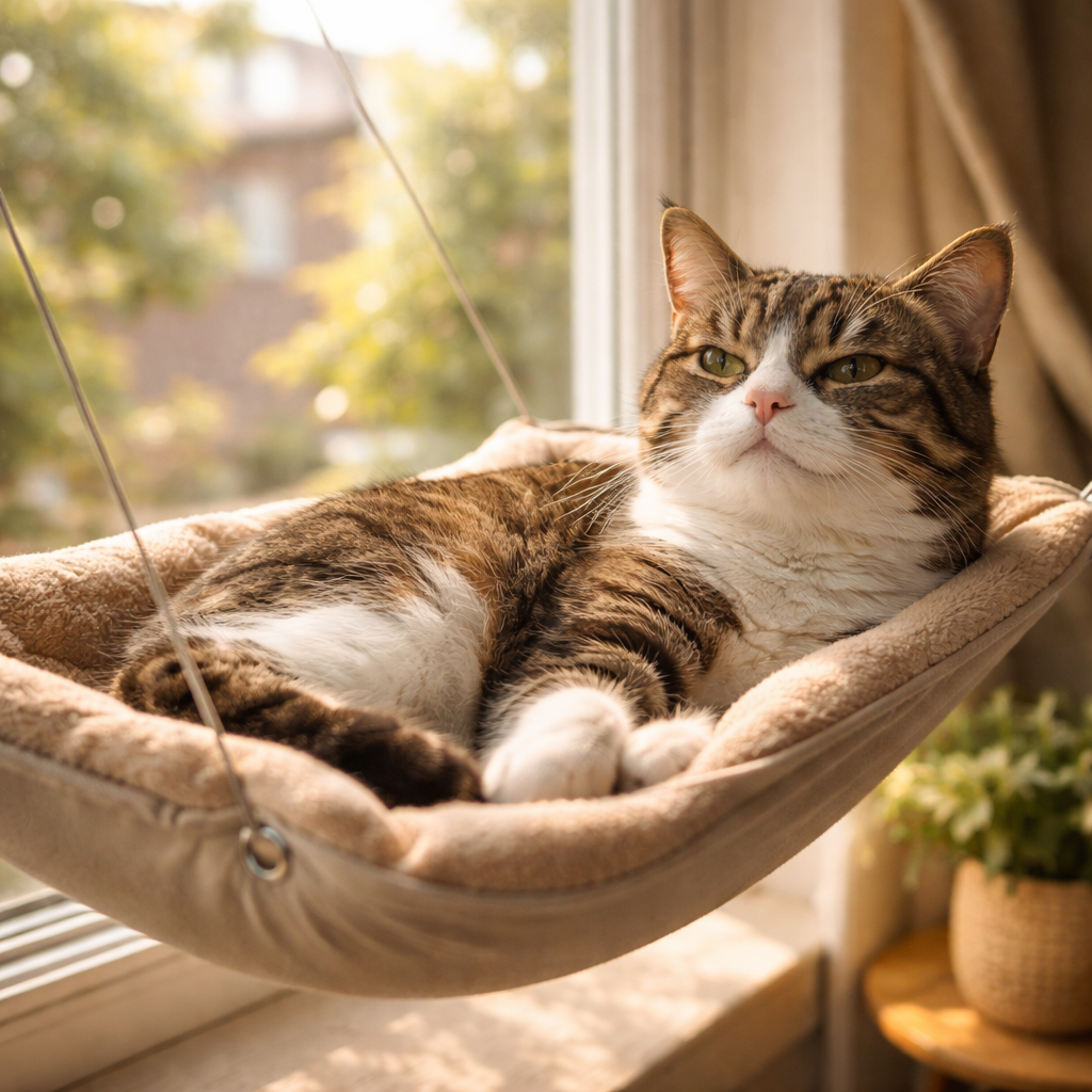 그리고 고양이만을 위한 공간을 하나 만들어주는 것도 좋아요. 캣타워나 창가 해먹처럼 ‘나만의 영역’이 확실하면, 고양이는 자신이 보호받고 있다는 느낌을 받아요. 그 공간에 집사의 향기가 나는 옷이나 담요를 두는 것도 감정 안정에 효과적이에요.
