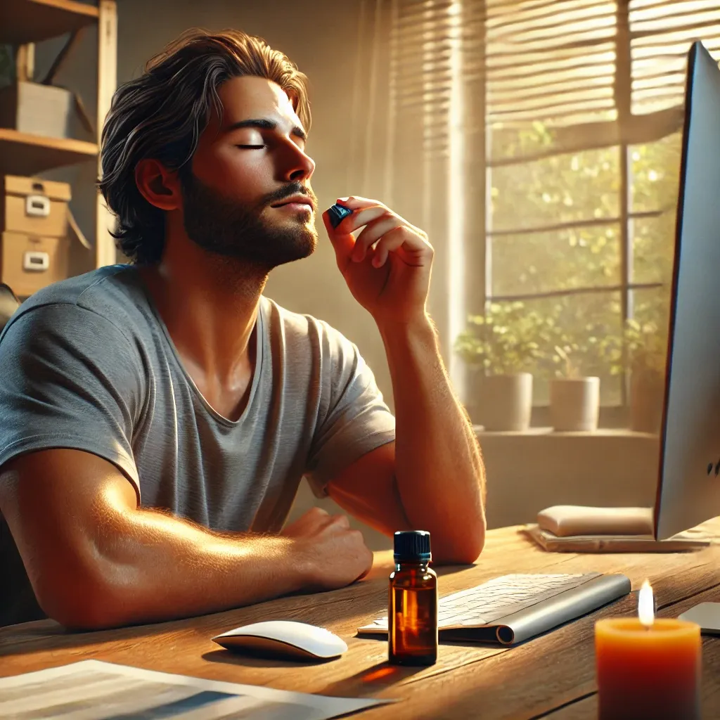 업무 중이나 스트레스를 받을 때 짧게 에센셜 오일을 맡으며 호흡하는 것은 스트레스를 줄이고 자기 수용을 돕는 빠른 방법입니다. 간단한 향기 사용은 단조로운 일상 속에서도 즉각적인 감정 완화 효과를 줍니다.