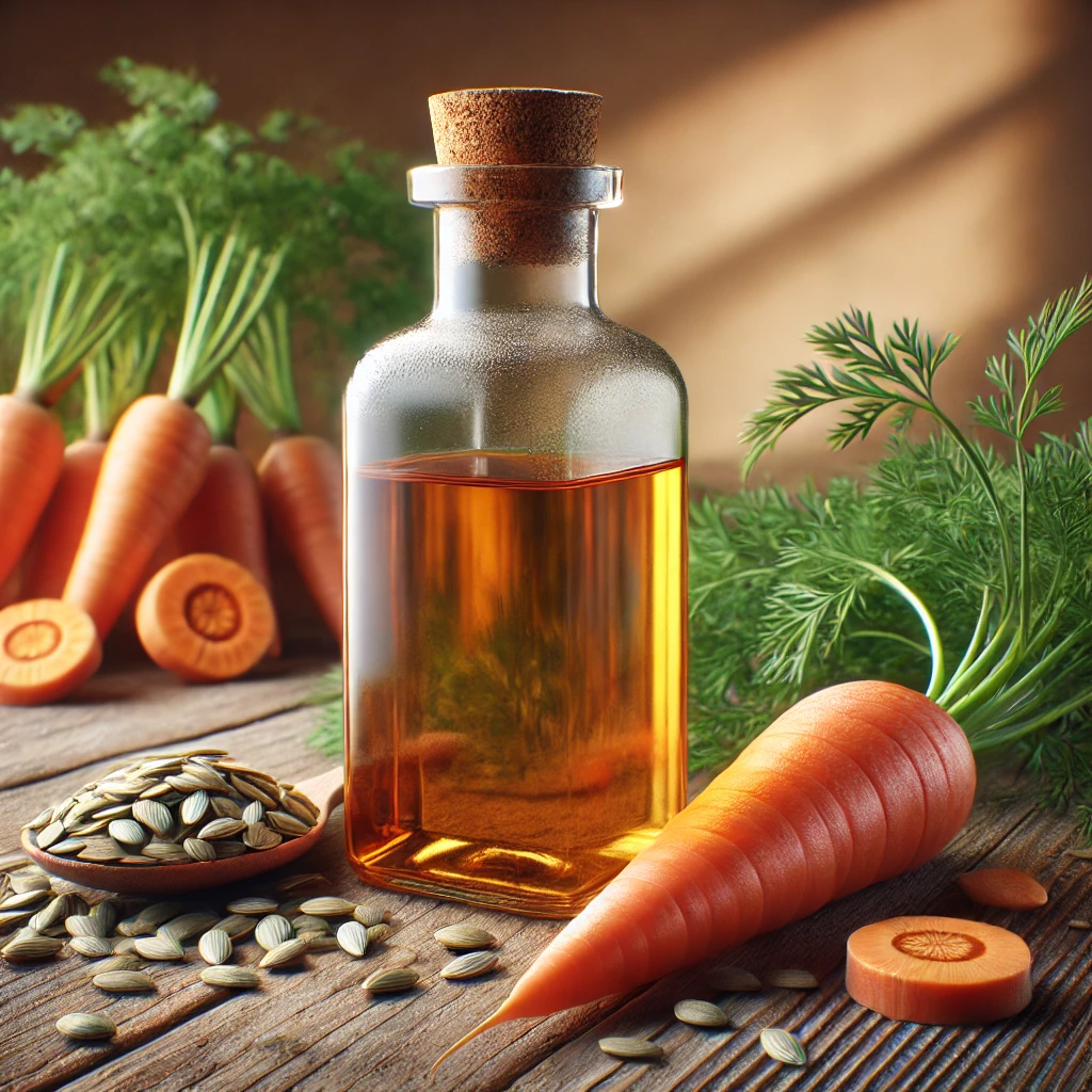 네 번째로 추천하는 오일은 캐롯 씨드 오일이에요. 이 오일은 비타민 A와 베타카로틴이 풍부해 피부 재생을 촉진하고 민감한 피부를 강화하는 데 큰 역할을 해요. 피부톤을 균일하게 하고 건강하게 만들어 준답니다.