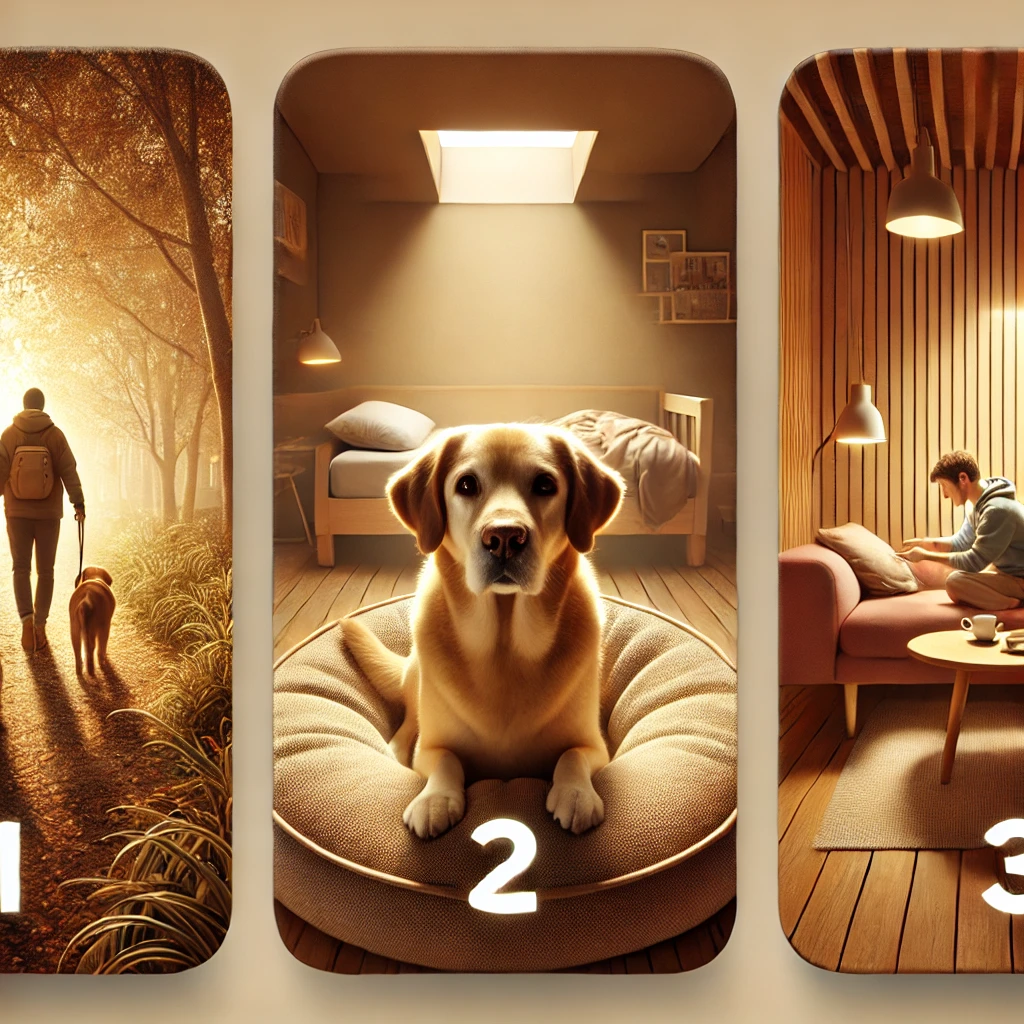 2️⃣ 편안한 환경 조성 조용한 공간을 마련하고, 부드러운 음악을 틀어주면 반려견이 편안함을 느낄 수 있어요.