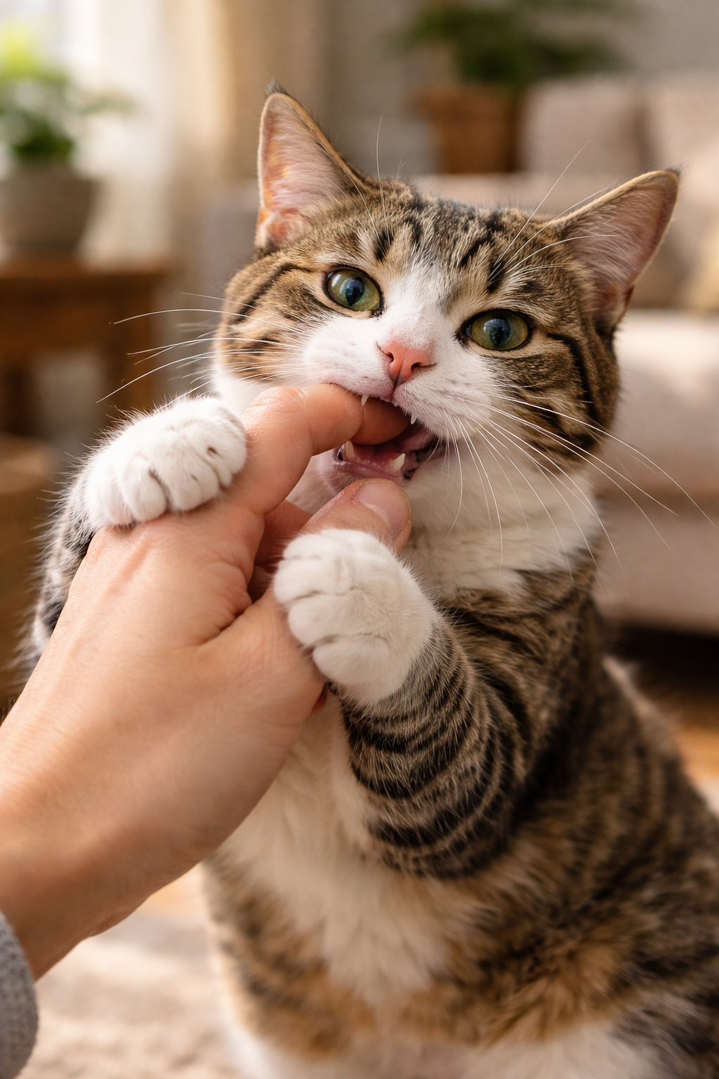 사춘기 고양이는 놀이와 공격의 경계가 흐릿해져요. 물고 튀는 행동이 반복되면 스스로도 흥분을 조절하지 못한다고 해요. 한 번 흥분하면 심박수가 평소보다 20% 이상 올라간다는 실험 결과도 있었어요. 그러니까 제 손이 사냥감으로 보였던 거예요.