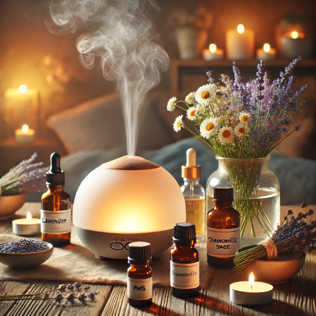 아로마테라피는 식물에서 추출한 에센셜 오일을 사용해 신체적, 정신적 건강을 개선하는 자연치유법이에요. 특히 PMS와 관련된 불편한 증상을 완화하는 데 효과적이라고 알려져 있어요.
