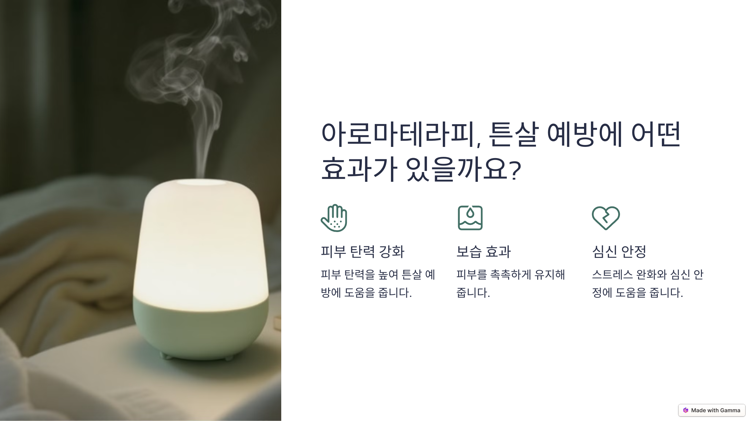 다음 섹션에서 아로마테라피가 튼살 예방에 어떻게 도움이 되는지 알아볼게요! 🌿