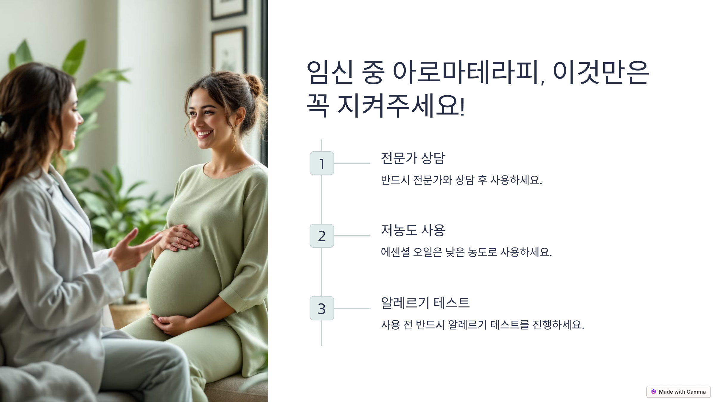 이제 임신 중 아로마 오일을 사용할 때 주의해야 할 점을 알아볼까요? 😊